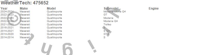 Below is an abbreviated list of applications for the FloorLiner DigitalFit.Quattroporte, Maserati, 2024, 2023, 2022, 2021, 2020, 2019, 2018, 2017, 2016, 2015, 2014
