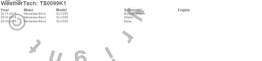 Below is an abbreviated list of applications for the WeatherTech SunShade Full Vehicle Kit.GLK250, GLK350, Mercedes-Benz, 2015, 2014, 2013, 2012, 2011, 2010