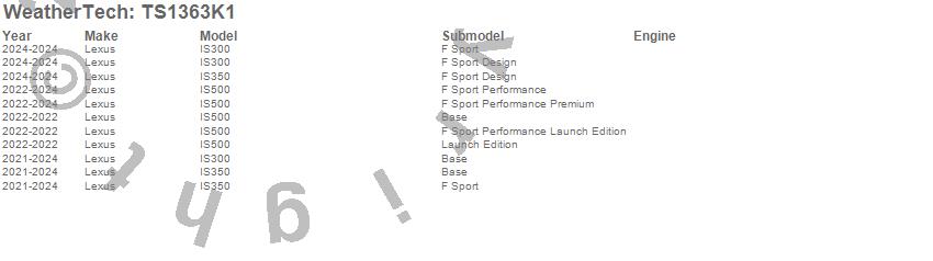 Below is an abbreviated list of applications for the WeatherTech SunShade Full Vehicle Kit.IS300, IS350, IS500, Lexus, 2024, 2023, 2022, 2021