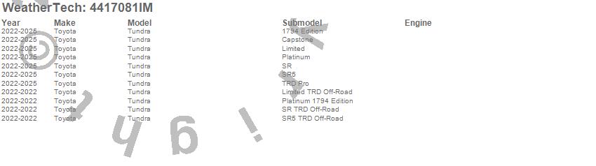 Brand: WeatherTechPart Number: 4417081IMFloor Mat Set Type: Black - FrontUPC: 787765516686
