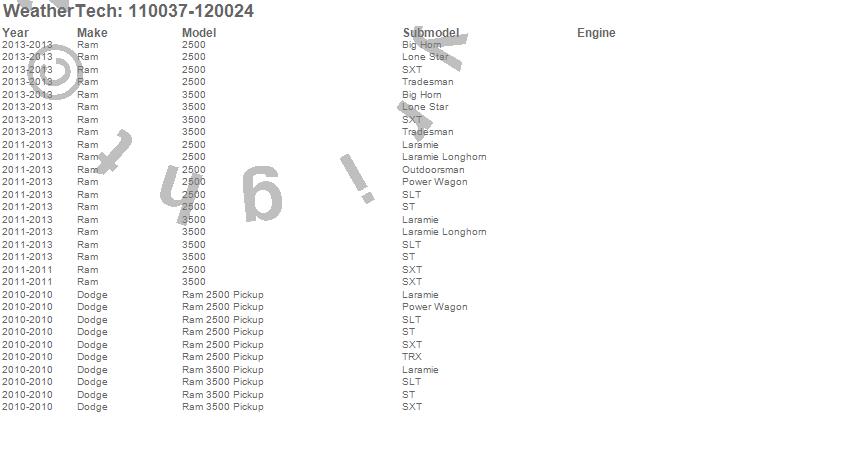 Below is an abbreviated list of applications for the MudFlap No-Drill DigitalFit MudFlap Kit.2500, 3500, Ram 2500, Ram 3500, Dodge, Ram, 2013, 2012, 2011, 2010