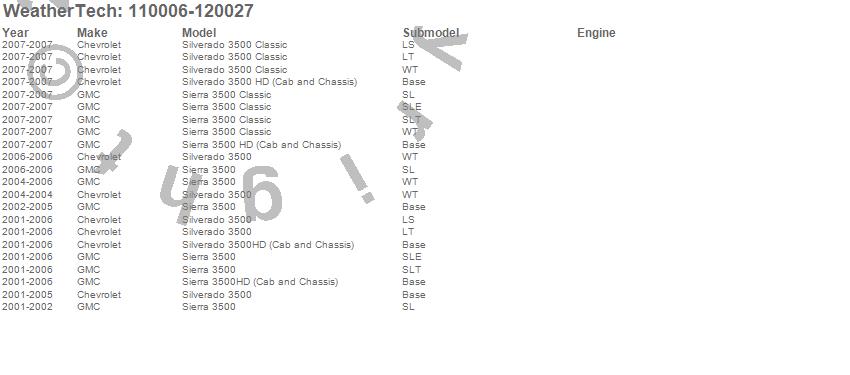 Below is an abbreviated list of applications for the MudFlap No-Drill DigitalFit MudFlap Kit.Sierra 3500, Sierra 3500 Classic, Sierra 3500 HD, Sierra 3500HD, Silverado 3500, Silverado 3500 Classic, Silverado 3500HD, Chevrolet, GMC, 2007, 2006, 2005, 2004, 2003, 2002, 2001