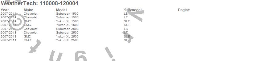 Below is an abbreviated list of applications for the MudFlap No-Drill DigitalFit MudFlap Kit.Suburban 1500, Suburban 2500, Yukon XL 1500, Yukon XL 2500, Chevrolet, GMC, 2014, 2013, 2012, 2011, 2010, 2009, 2008, 2007