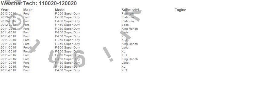 Below is an abbreviated list of applications for the MudFlap No-Drill DigitalFit MudFlap Kit.F-250 Super Duty, F-350 Super Duty, F-450 Super Duty, Ford, 2016, 2015, 2014, 2013, 2012, 2011