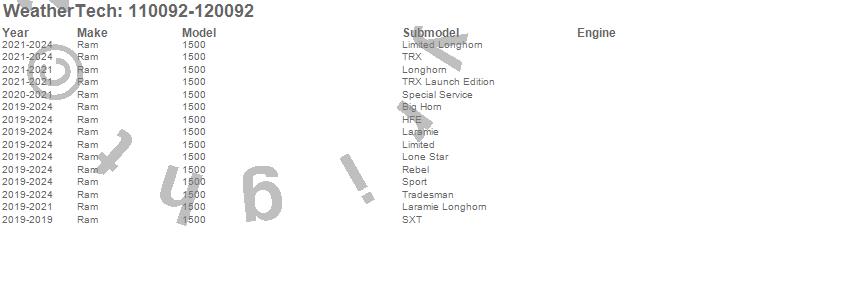 Brand: WeatherTechPart Number: 110092-120092Mud Flap Kit Type: BlackUPC: 787765696111