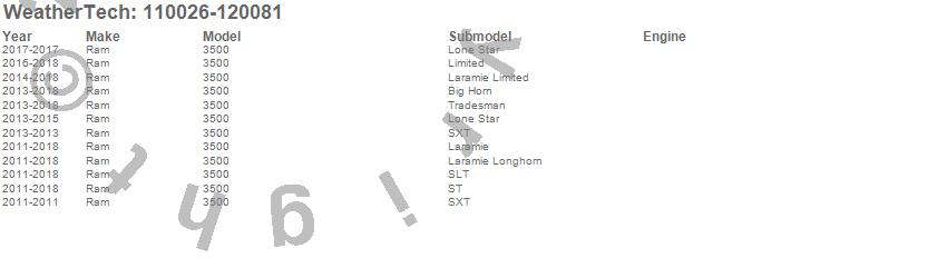 Below is an abbreviated list of applications for the MudFlap No-Drill DigitalFit MudFlap Kit.3500, Ram 3500, Dodge, Ram, 2018, 2017, 2016, 2015, 2014, 2013, 2012, 2011, 2010