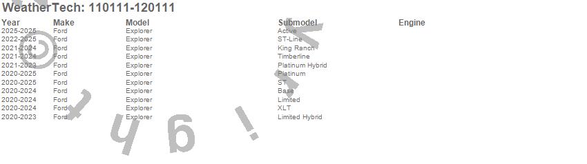Below is an abbreviated list of applications for the MudFlap No-Drill DigitalFit MudFlap Kit.Explorer, Ford, 2026, 2025, 2024, 2023, 2022, 2021, 2020