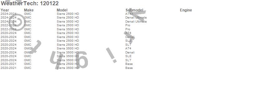 Below is an abbreviated list of applications for the MudFlap No-Drill DigitalFit.Sierra 2500 HD, Sierra 3500 HD, GMC, 2026, 2025, 2024, 2023, 2022, 2021, 2020