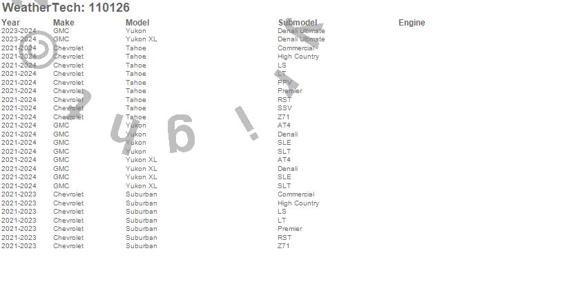 Below is an abbreviated list of applications for the MudFlap No-Drill DigitalFit.Suburban, Tahoe, Yukon, Yukon XL, Chevrolet, GMC, 2026, 2025, 2024, 2023, 2022, 2021