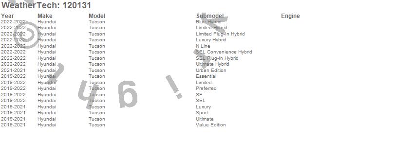 Below is an abbreviated list of applications for the MudFlap No-Drill DigitalFit.Tucson, Hyundai, 2022, 2021, 2020, 2019