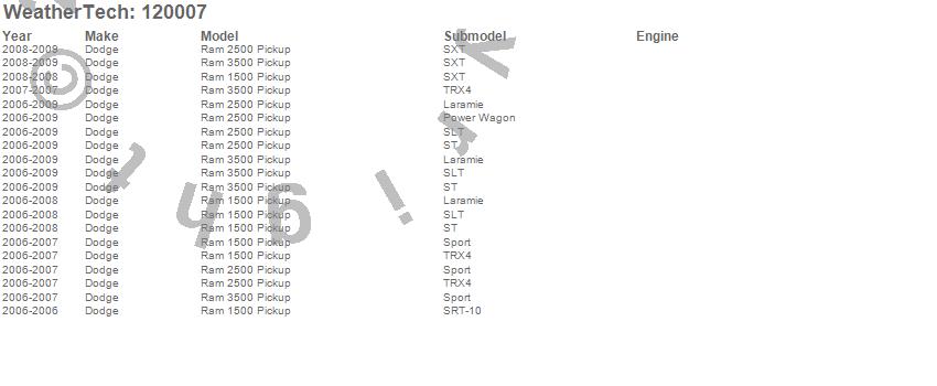 Below is an abbreviated list of applications for the MudFlap No-Drill DigitalFit.Ram 1500, Ram 2500, Ram 3500, Dodge, 2009, 2008, 2007, 2006