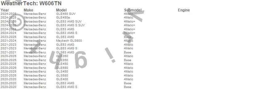 Below is an abbreviated list of applications for the All Weather Floor Mats.GLE350, GLE400, GLE450, GLE450 SUV, GLE450e, GLE53 AMG, GLE53 AMG SUV, GLE580, GLE63 AMG, GLE63 AMG S, GLE63 AMG S SUV, GLS450, GLS580, GLS63 AMG, Maybach GLS600, Mercedes-Benz, 2025, 2024, 2023, 2022