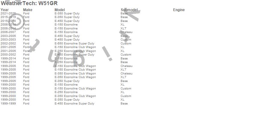 Below is an abbreviated list of applications for the All Weather Floor Mats.E-150 Econoline, E-150 Econoline Club Wagon, E-250 Econoline, E-350 Econoline Club Wagon, E-350 Super Duty, E-450 Econoline Super Duty, E-450 Super Duty, E-550 Econoline Super Duty, Ford, 2026, 2025, 2024, 2023, 2022, 2021, 2019, 2018, 2017, 2016, 2015