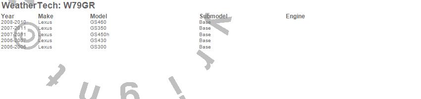 Below is an abbreviated list of applications for the All Weather Floor Mats.GS300, GS350, GS430, GS450h, GS460, Lexus, 2011, 2010, 2009, 2008, 2007, 2006