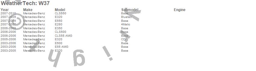 Below is an abbreviated list of applications for the All Weather Floor Mats.CLS500, CLS55 AMG, CLS550, E280, E320, E350, E500, E55 AMG, E550, E63 AMG, Mercedes-Benz, 2010, 2009, 2008, 2007, 2006, 2005, 2004, 2003