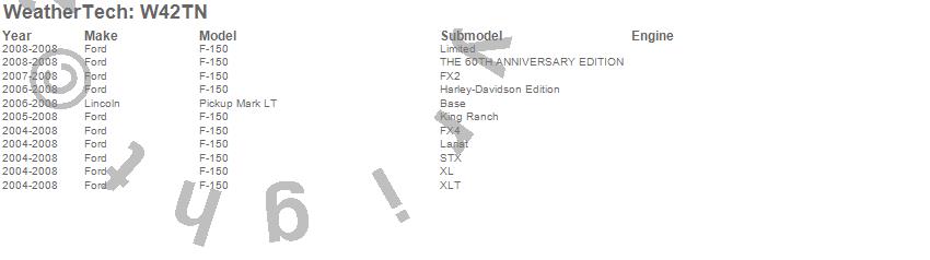 Below is an abbreviated list of applications for the All Weather Floor Mats.F-150, Mark LT, Ford, Lincoln, 2008, 2007, 2006, 2005, 2004