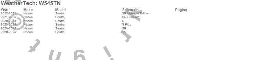 Below is an abbreviated list of applications for the All Weather Floor Mats.Sentra, Nissan, 2025, 2024, 2023, 2022, 2021, 2020