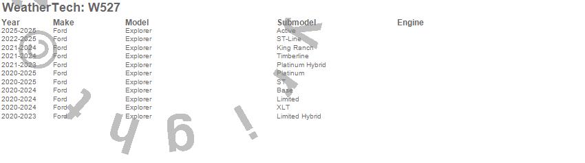 Below is an abbreviated list of applications for the All Weather Floor Mats.Explorer, Ford, 2026, 2025, 2024, 2023, 2022, 2021, 2020