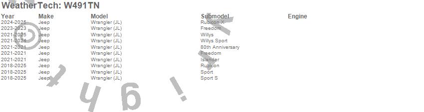 Below is an abbreviated list of applications for the All Weather Floor Mats.Wrangler, Wrangler (JL), Jeep, 2026, 2025, 2024, 2023, 2022, 2021, 2020, 2019, 2018