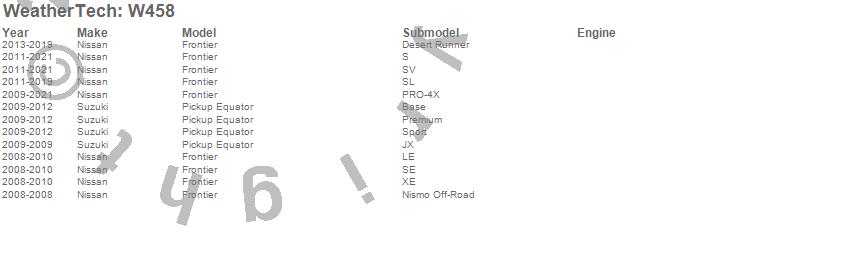 Below is an abbreviated list of applications for the All Weather Floor Mats.Equator, Frontier, Nissan, Suzuki, 2021, 2020, 2019, 2018, 2017, 2016, 2015, 2014, 2013, 2012, 2011, 2010, 2009, 2008