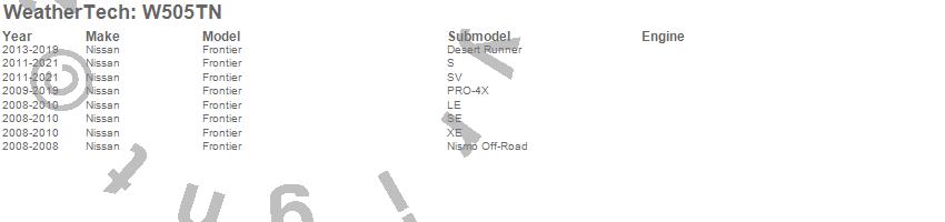 Below is an abbreviated list of applications for the All Weather Floor Mats.Frontier, Nissan, 2021, 2020, 2019, 2018, 2017, 2016, 2015, 2014, 2013, 2012, 2011, 2010, 2009, 2008