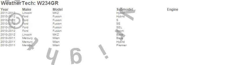 Below is an abbreviated list of applications for the All Weather Floor Mats.Fusion, Milan, MKZ, Ford, Lincoln, Mercury, 2012, 2011, 2010