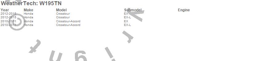 Below is an abbreviated list of applications for the All Weather Floor Mats.Accord Crosstour, Crosstour, Honda, 2015, 2014, 2013, 2012, 2011, 2010