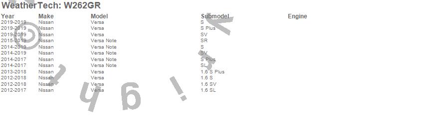 Below is an abbreviated list of applications for the All Weather Floor Mats.Versa, Versa Note, Nissan, 2019, 2018, 2017, 2016, 2015, 2014, 2013, 2012
