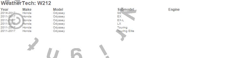 Below is an abbreviated list of applications for the All Weather Floor Mats.Odyssey, Honda, 2017, 2016, 2015, 2014, 2013, 2012, 2011