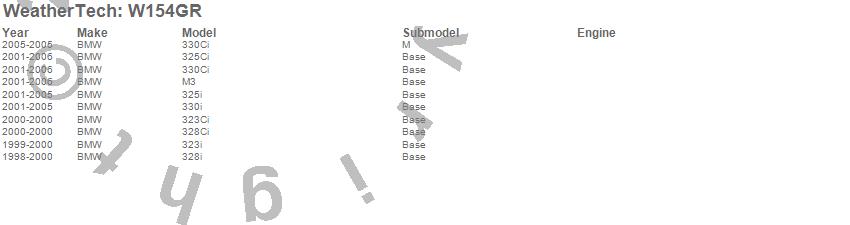 Below is an abbreviated list of applications for the All Weather Floor Mats.323Ci, 323i, 325Ci, 325i, 328Ci, 328i, 330Ci, 330i, M3, BMW, 2006, 2005, 2004, 2003, 2002, 2001, 2000, 1999, 1998