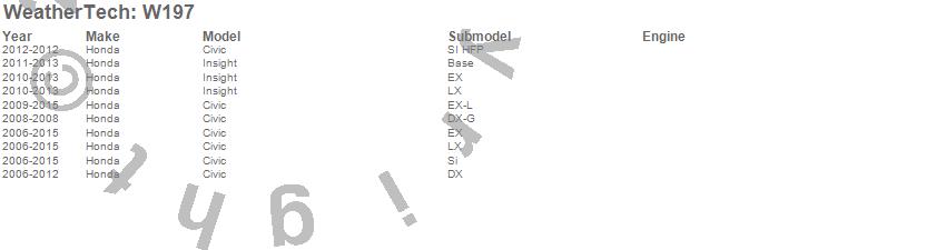 Below is an abbreviated list of applications for the All Weather Floor Mats.Civic, Insight, Honda, 2015, 2014, 2013, 2012, 2011, 2010, 2009, 2008, 2007, 2006