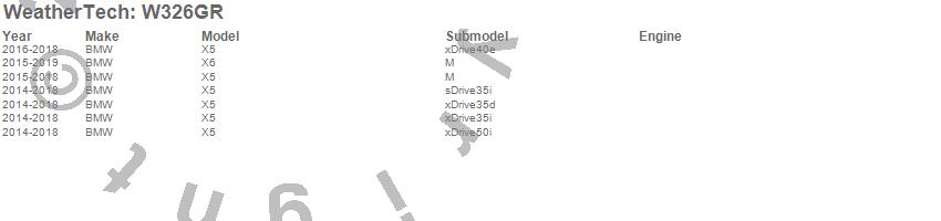 Below is an abbreviated list of applications for the All Weather Floor Mats.X5, X6, BMW, 2019, 2018, 2017, 2016, 2015, 2014