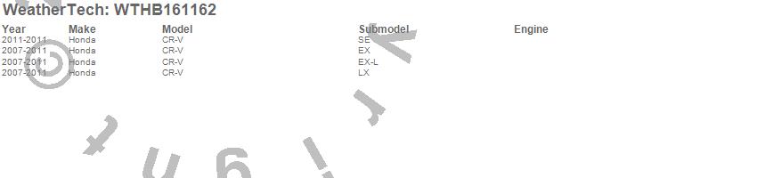 Below is an abbreviated list of applications for the All Weather Floor Mats.CR-V, Honda, 2011, 2010, 2009, 2008, 2007