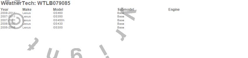 Below is an abbreviated list of applications for the All Weather Floor Mats.GS300, GS350, GS430, GS450h, GS460, Lexus, 2011, 2010, 2009, 2008, 2007, 2006