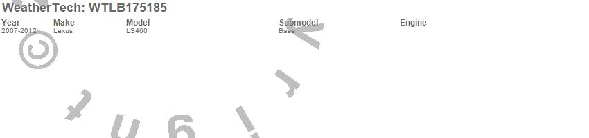 Below is an abbreviated list of applications for the All Weather Floor Mats.LS460, Lexus, 2012, 2011, 2010, 2009, 2008, 2007