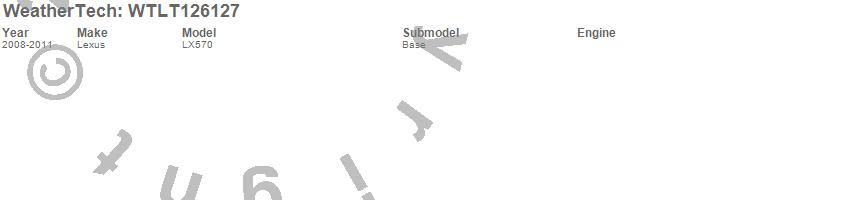 Below is an abbreviated list of applications for the All Weather Floor Mats.LX570, Lexus, 2011, 2010, 2009, 2008