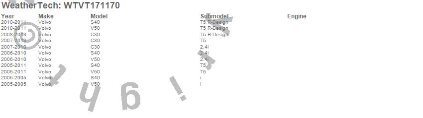 Below is an abbreviated list of applications for the All Weather Floor Mats.C30, S40, V50, Volvo, 2013, 2012, 2011, 2010, 2009, 2008, 2007, 2006, 2005