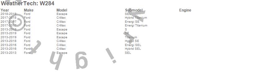 Below is an abbreviated list of applications for the All Weather Floor Mats.C-Max, Escape, Ford, 2019, 2018, 2017, 2016, 2015, 2014, 2013