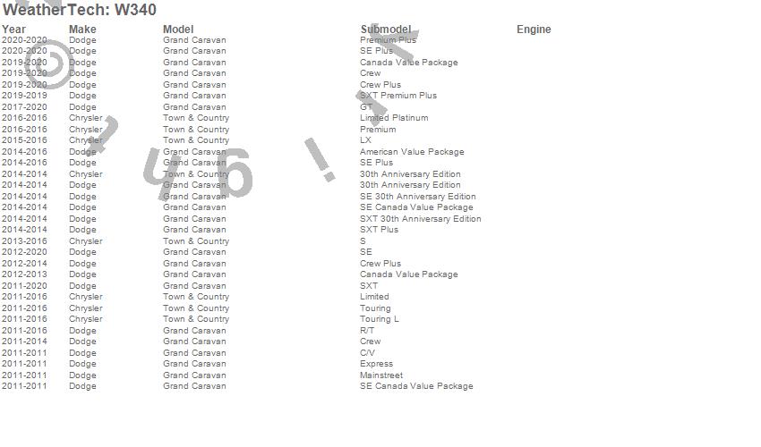 Below is an abbreviated list of applications for the All Weather Floor Mats.Grand Caravan, Town & Country, Chrysler, Dodge, 2020, 2019, 2018, 2017, 2016, 2015, 2014, 2013, 2012, 2011