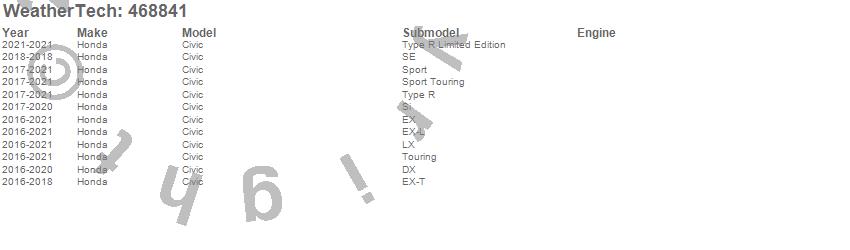 Below is an abbreviated list of applications for the FloorLiner DigitalFit.Civic, Honda, 2021, 2020, 2019, 2018, 2017, 2016
