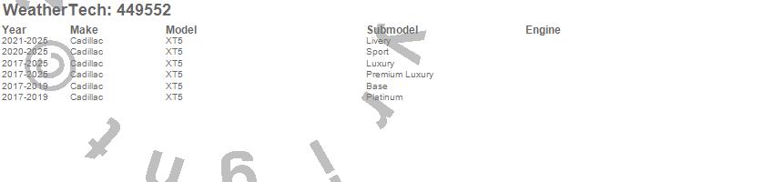 Below is an abbreviated list of applications for the FloorLiner DigitalFit.XT5, Cadillac, 2025, 2024, 2023, 2022, 2021, 2020, 2019, 2018, 2017