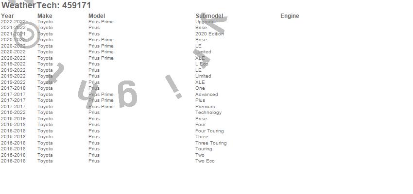 Below is an abbreviated list of applications for the FloorLiner DigitalFit.Prius, Prius Prime, Toyota, 2022, 2021, 2020, 2019, 2018, 2017, 2016
