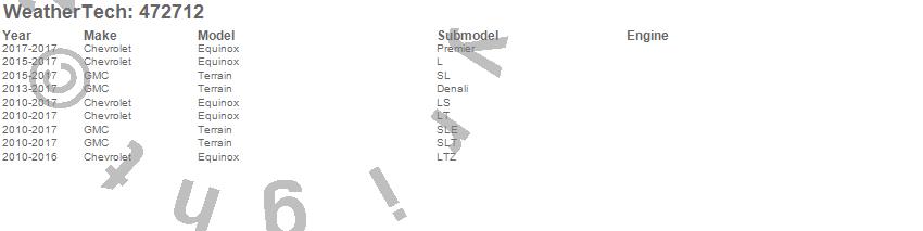 Below is an abbreviated list of applications for the FloorLiner DigitalFit.Equinox, Terrain, Chevrolet, GMC, 2017, 2016, 2015, 2014, 2013, 2012, 2011, 2010