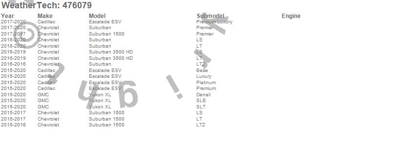 Below is an abbreviated list of applications for the FloorLiner DigitalFit.Escalade ESV, Suburban, Suburban 1500, Suburban 3500 HD, Yukon XL, Cadillac, Chevrolet, GMC, 2020, 2019, 2018, 2017, 2016, 2015