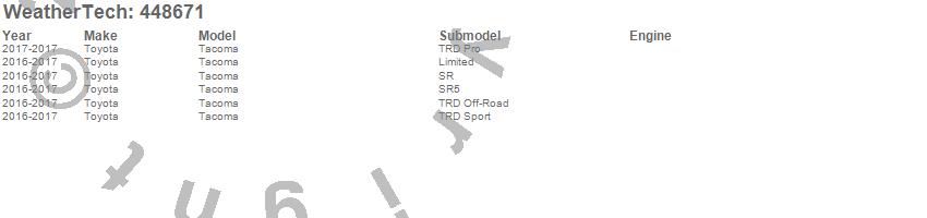 Below is an abbreviated list of applications for the FloorLiner DigitalFit.Tacoma, Toyota, 2017, 2016