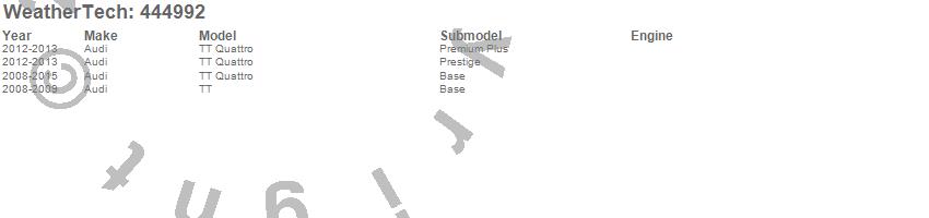 Below is an abbreviated list of applications for the FloorLiner DigitalFit.TT, TT Quattro, Audi, 2015, 2014, 2013, 2012, 2011, 2010, 2009, 2008