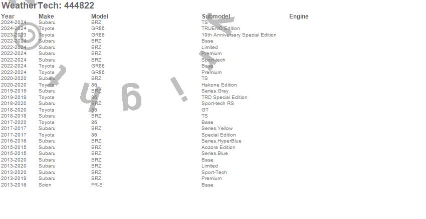 Below is an abbreviated list of applications for the FloorLiner DigitalFit.86, BRZ, FR-S, GR86, Scion, Subaru, Toyota, 2025, 2024, 2023, 2022, 2020, 2019, 2018, 2017, 2016, 2015, 2014, 2013