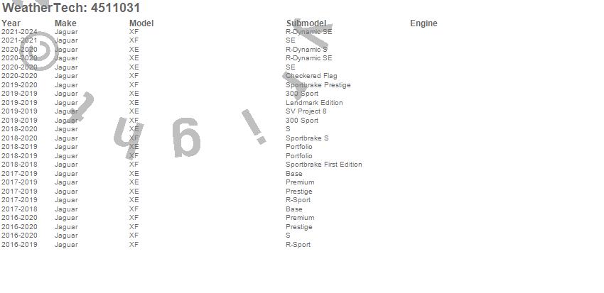 Below is an abbreviated list of applications for the FloorLiner DigitalFit.XE, XF, Jaguar, 2024, 2023, 2022, 2021, 2020, 2019, 2018, 2017, 2016