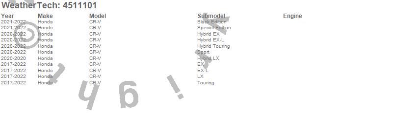 Below is an abbreviated list of applications for the FloorLiner DigitalFit.CR-V, Honda, 2022, 2021, 2020, 2019, 2018, 2017