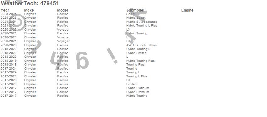 Below is an abbreviated list of applications for the FloorLiner DigitalFit.Pacifica, Voyager, Chrysler, 2026, 2025, 2024, 2023, 2022, 2021, 2020, 2019, 2018, 2017
